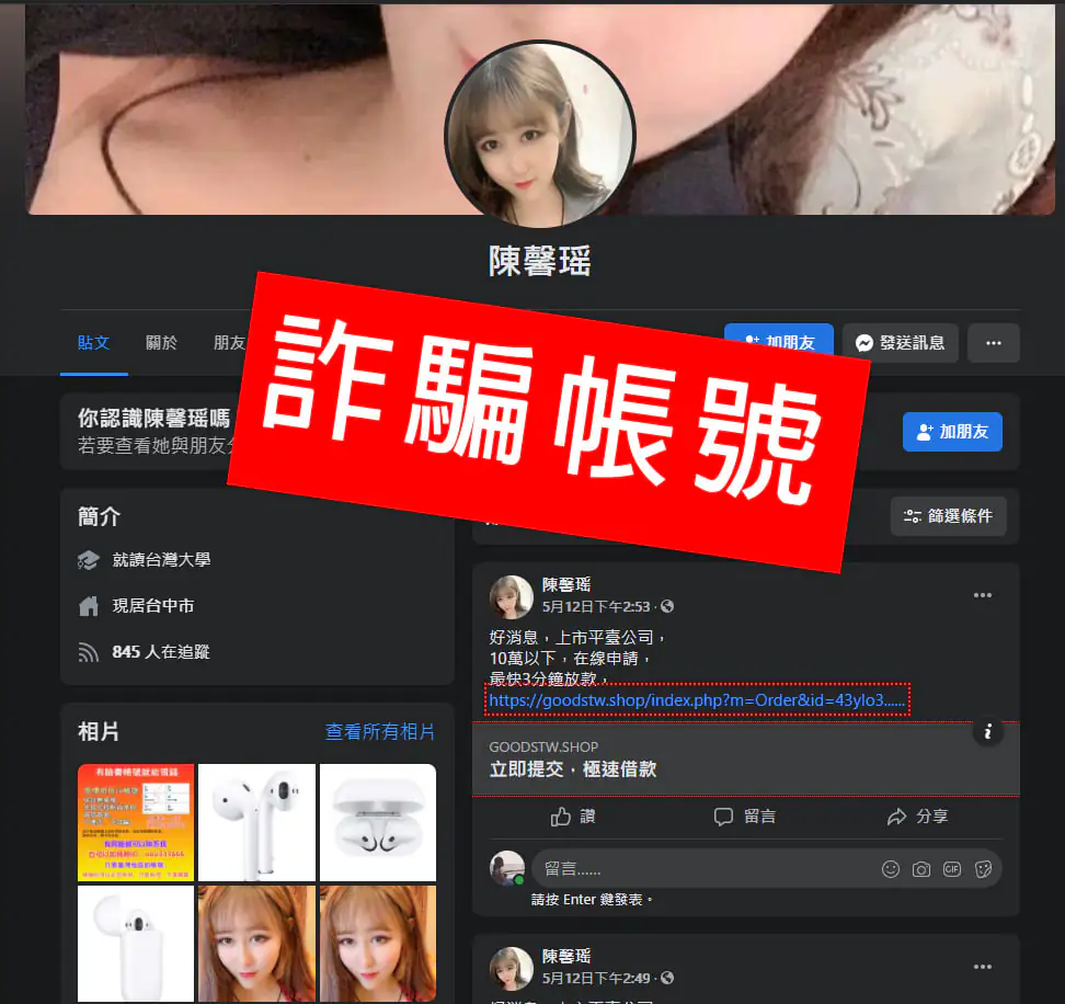↓↓此為發送❌詐騙網址的臉書帳號請注意↓↓
